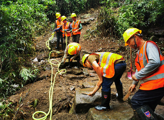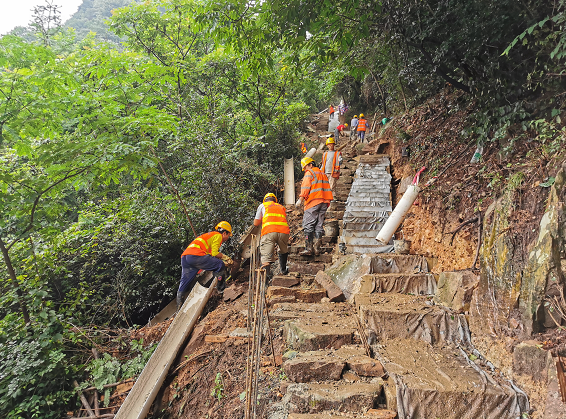 ¹¤ÈË´©×źñÖØµÄÓêÒ¡¢ÓêÑ¥£¬£¬£¬£¬£¬£¬Å¿ÔÚ¶¸Ç͵ÄɽµÀÉÏÊ©¹¤£¬£¬£¬£¬£¬£¬Ã¿ÌìÒ»ÉíÄà¡¢Ò»ÉíÍÁ¡¢Ò»Éíº¹¡£¡£¡£¡£¡£¡£¡£¡£ÆÕͨÈËÅÀÒ»ÌËÒªÒ»¸ö°ëСʱµÄɽ·£¬£¬£¬£¬£¬£¬ÓеŤÈËÒ»ÌìÒªÀ´»ØÅÀÉÏÎåÁùÌË¡£¡£¡£¡£¡£¡£¡£¡£Îª±£Ö¤°²È«£¬£¬£¬£¬£¬£¬ÔÚÊ©¹¤Ç°£¬£¬£¬£¬£¬£¬¹¥¼áС×éÏÈ´øÈ˽«Ê¯°å·ȫ²¿Ë¢ÁËÒ»±é£¬£¬£¬£¬£¬£¬ÒÔ¼õÉÙ»¬µ¹£¬£¬£¬£¬£¬£¬ºóÓÖÔÚÓÐÌõ¼þµÄµØ·½´îÆðÁËÓêÅï¡£¡£¡£¡£¡£¡£¡£¡£
